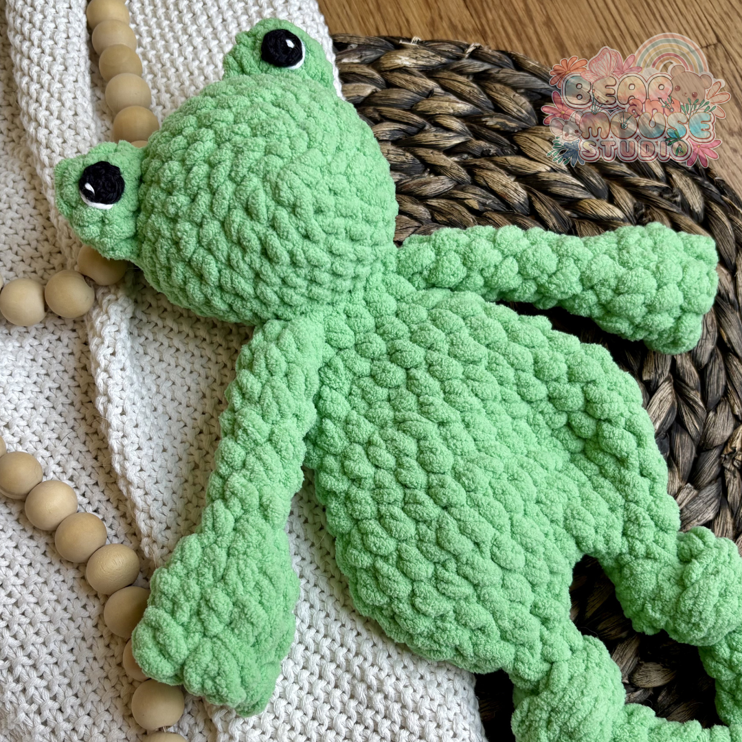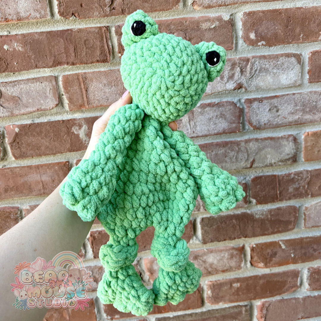Snuggle up with this adorable froggy, perfect for comforting little ones and adding a sweet touch to any nursery. Handmade with soft, baby-friendly materials, this cozy snuggler offers a soothing companion for naptime, bedtime, or on-the-go cuddles.