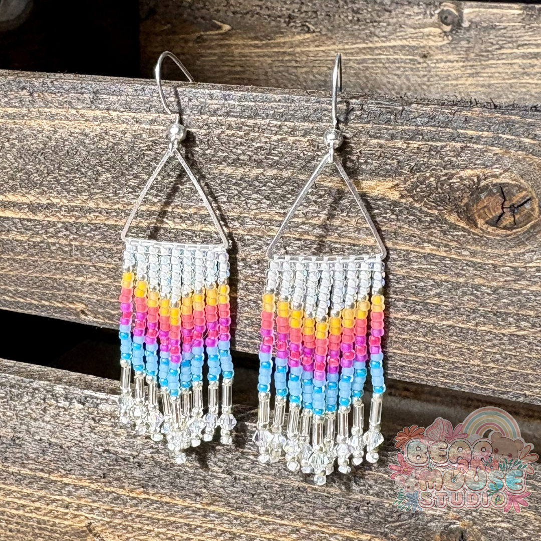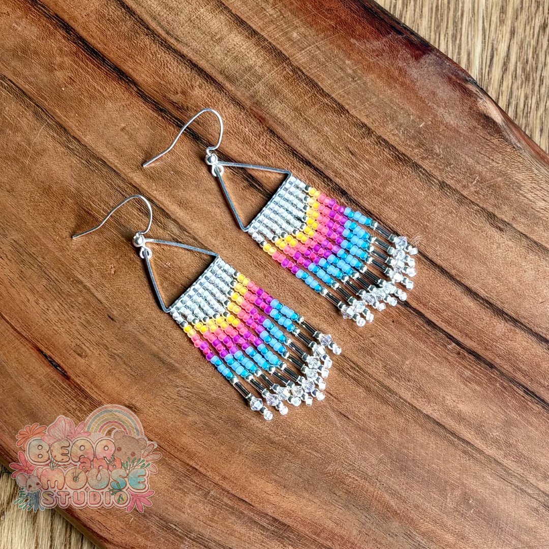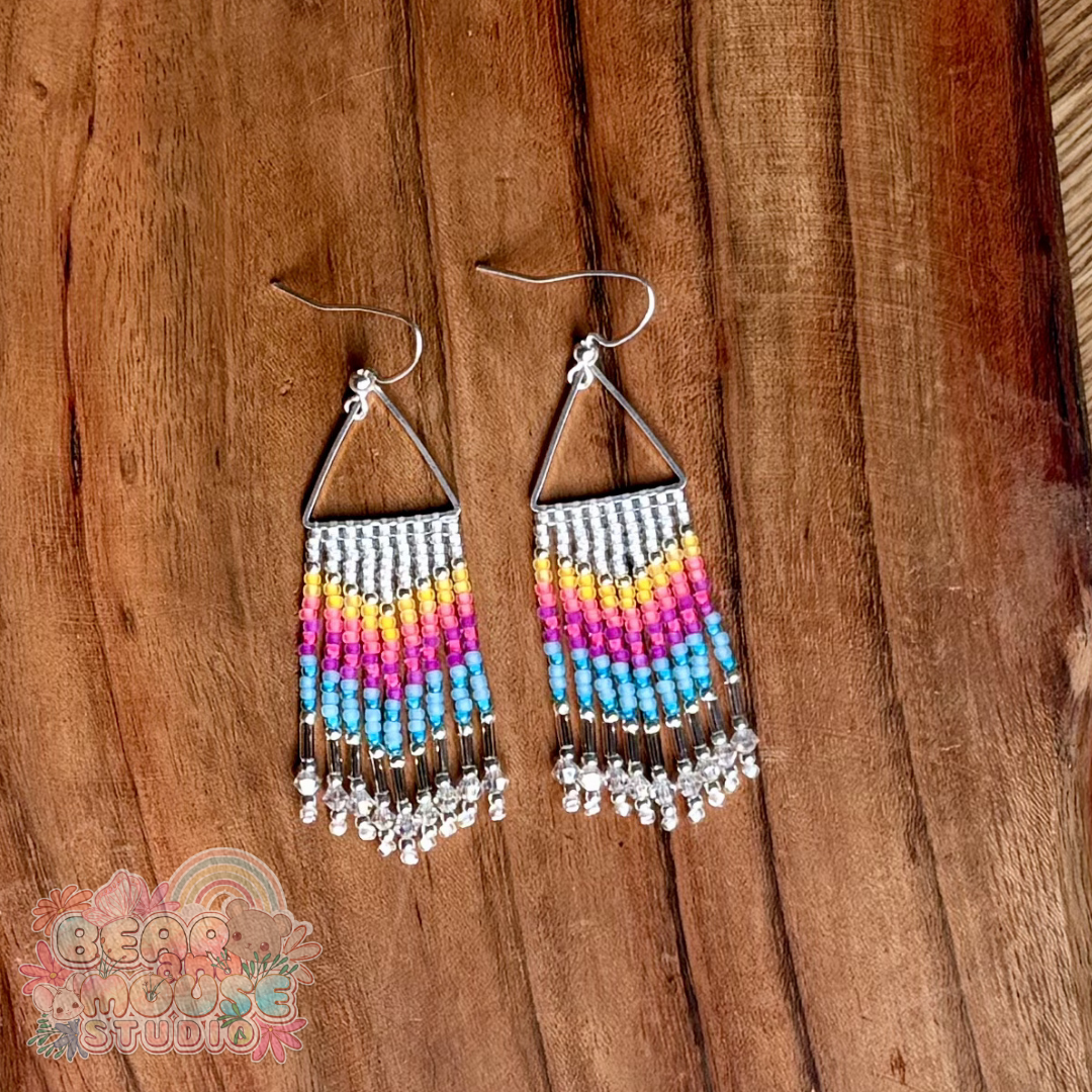 Brighten your day and your style with these stunning handmade fringe earrings! Beaded with bright and vibrant glass seed beads, and finished with stainless steel earring hooks. They are the perfect accessory to add a pop of color to any outfit!