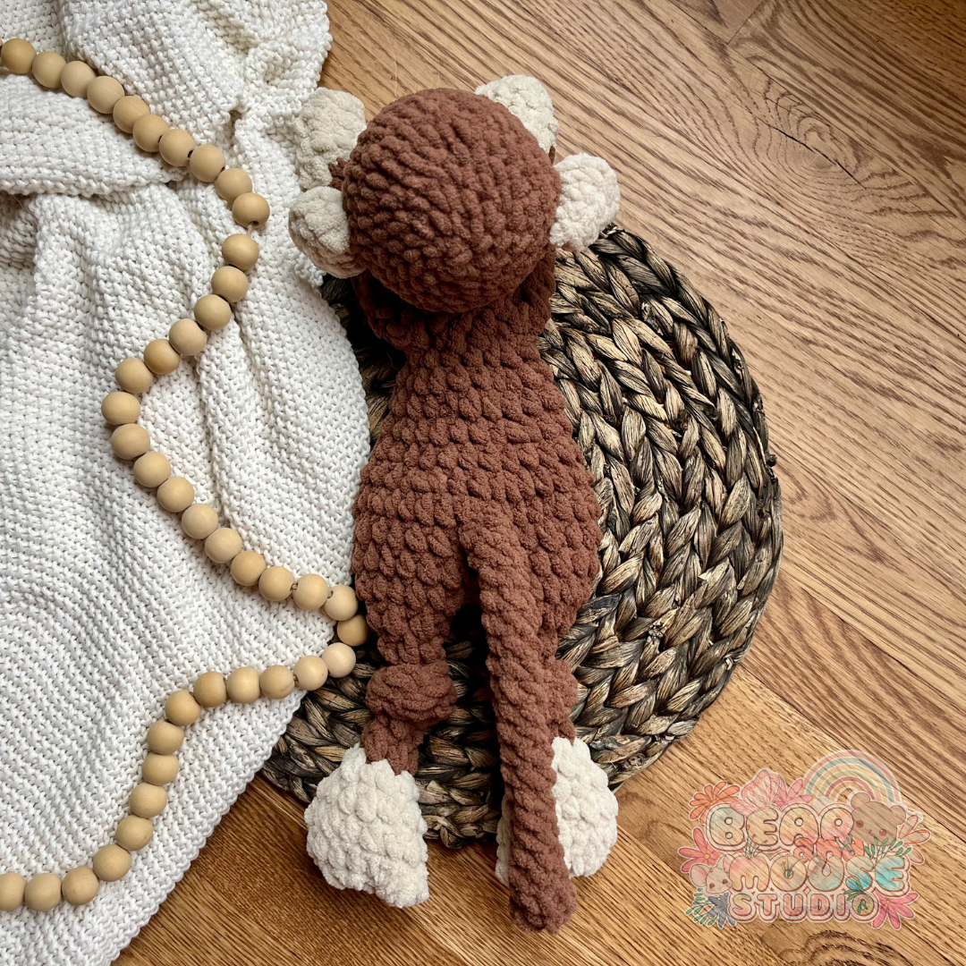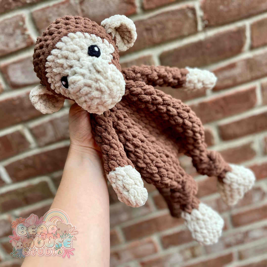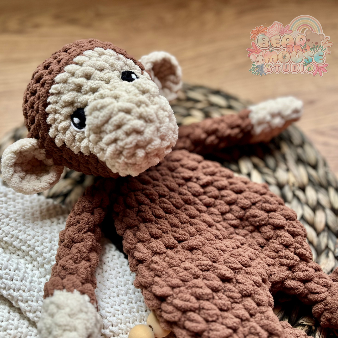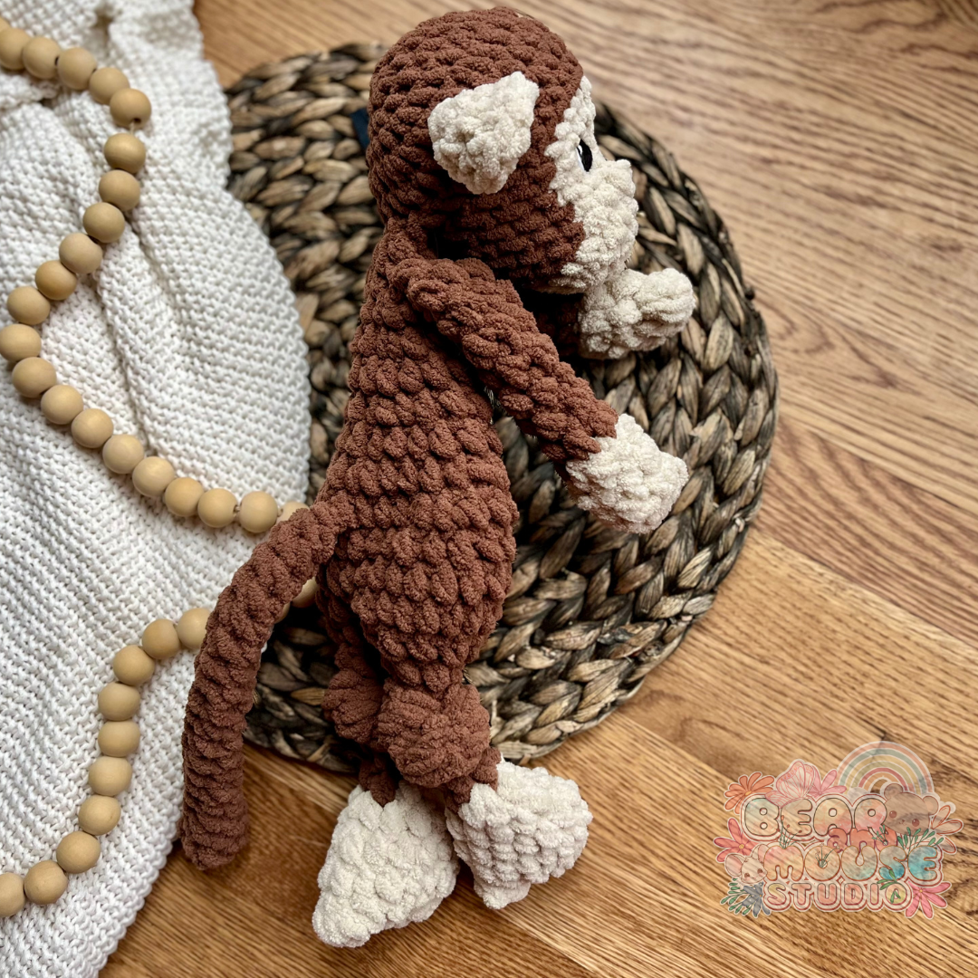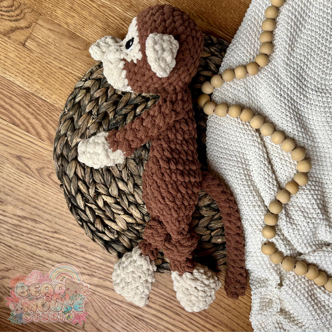 Snuggle up with this adorable little monkey, perfect for comforting little ones and adding a sweet touch to any nursery. Handmade with soft, baby-friendly materials, this cozy snuggler offers a soothing companion for naptime, bedtime, or on-the-go cuddles.