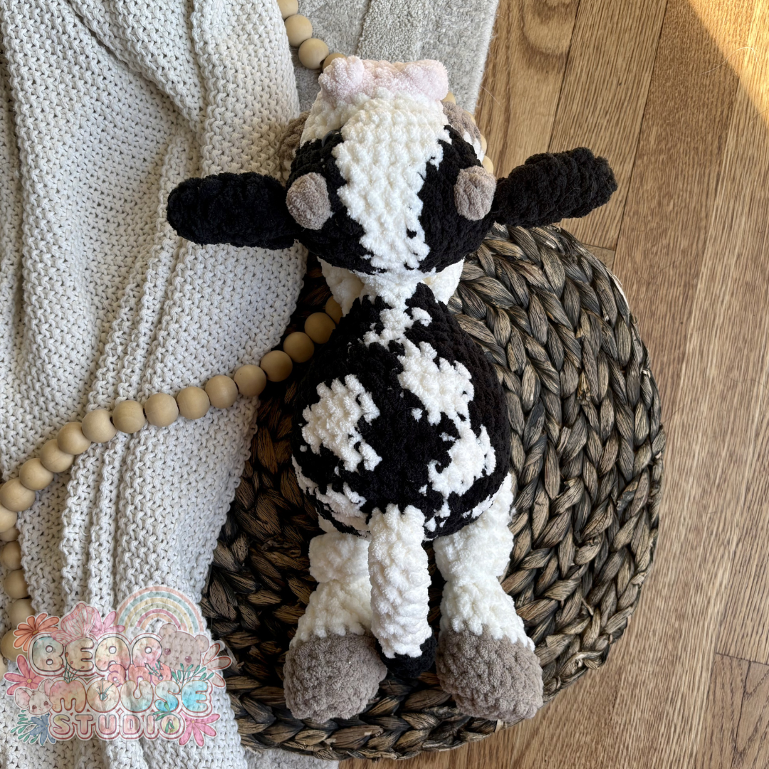 Introducing this beautifully handcrafted crochet cow knotted plushie, lovingly made with heirloom quality craftmanship.
