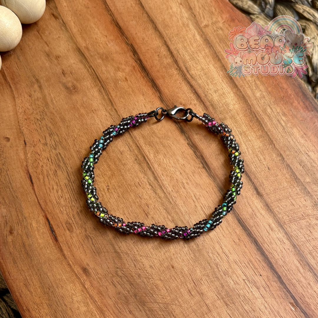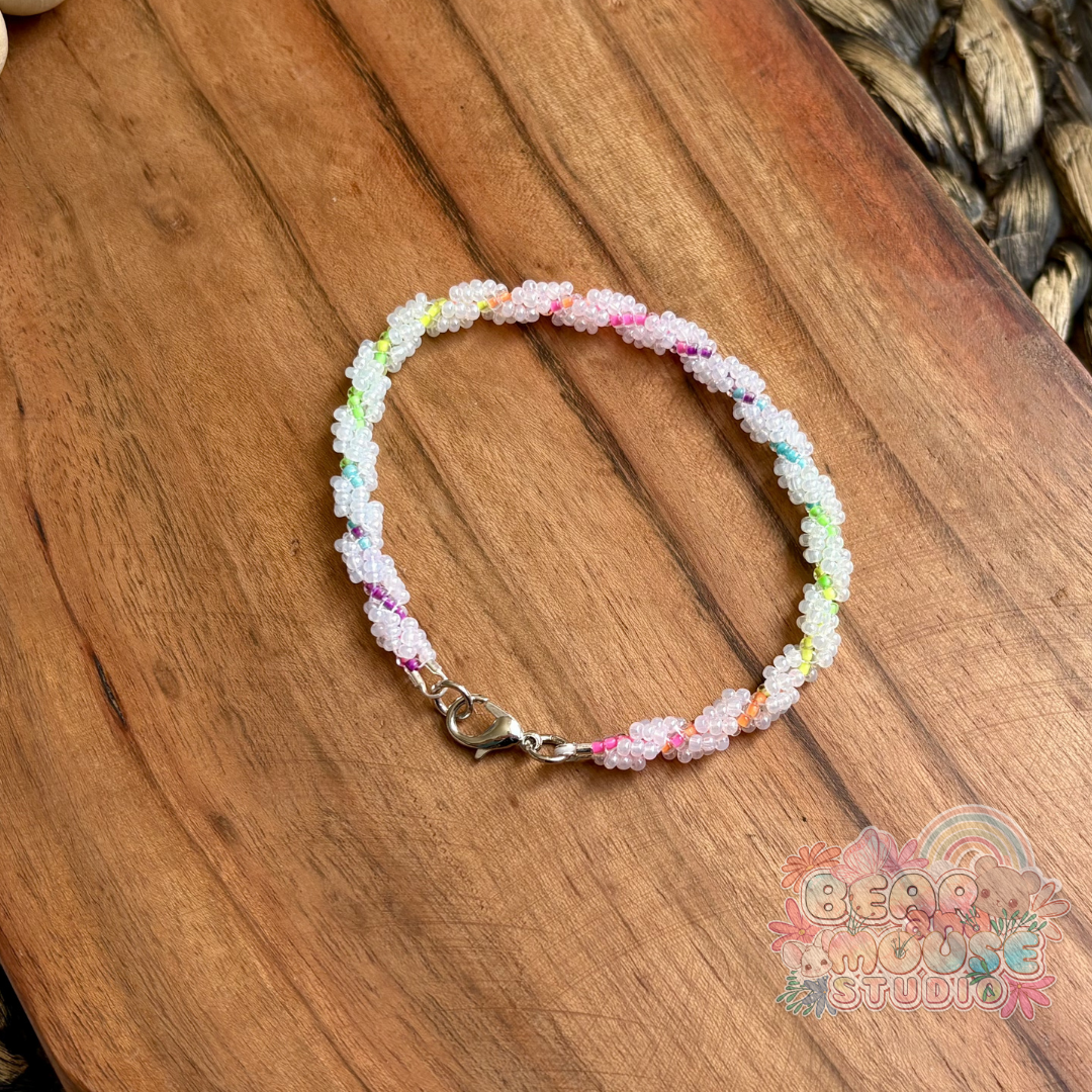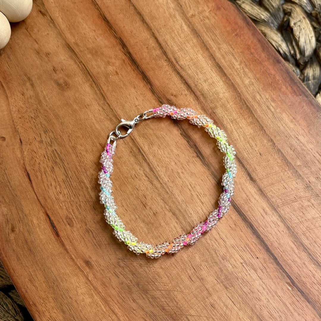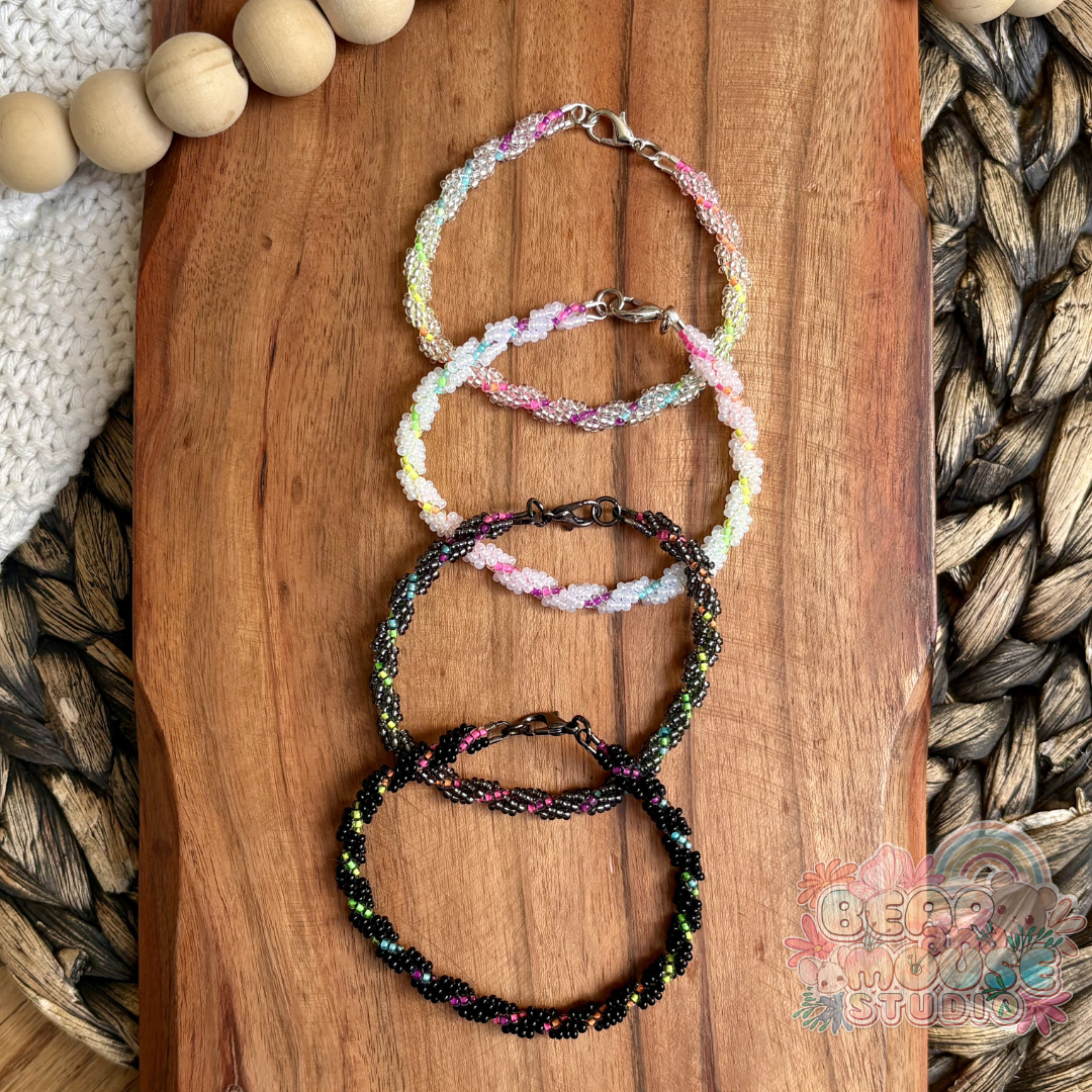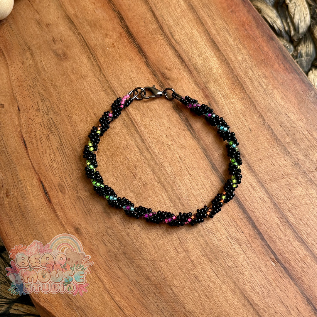 Brighten your day and your style with these stunning handmade bracelets! Beaded with bright and vibrant glass seed beads, and finished with lobster clasp closures. They are the perfect accessory to add a pop of color to any outfit! (Psssst... You should check out these bracelets under a blacklight!)